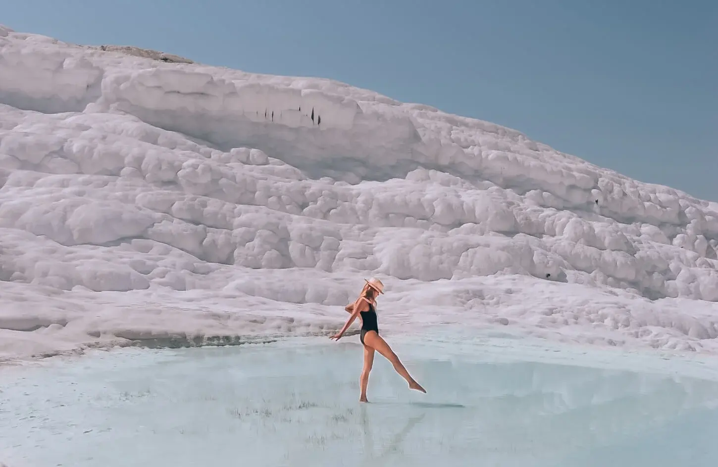 Visita al famoso Castillo de algodón, maravilla natural de gigantescas cascadas blancas, estalactitas y piscinas Naturales formadas a lo largo de los siglos por el paso de las aguas cargadas de sales calcáreas procedentes de fuentes termales.