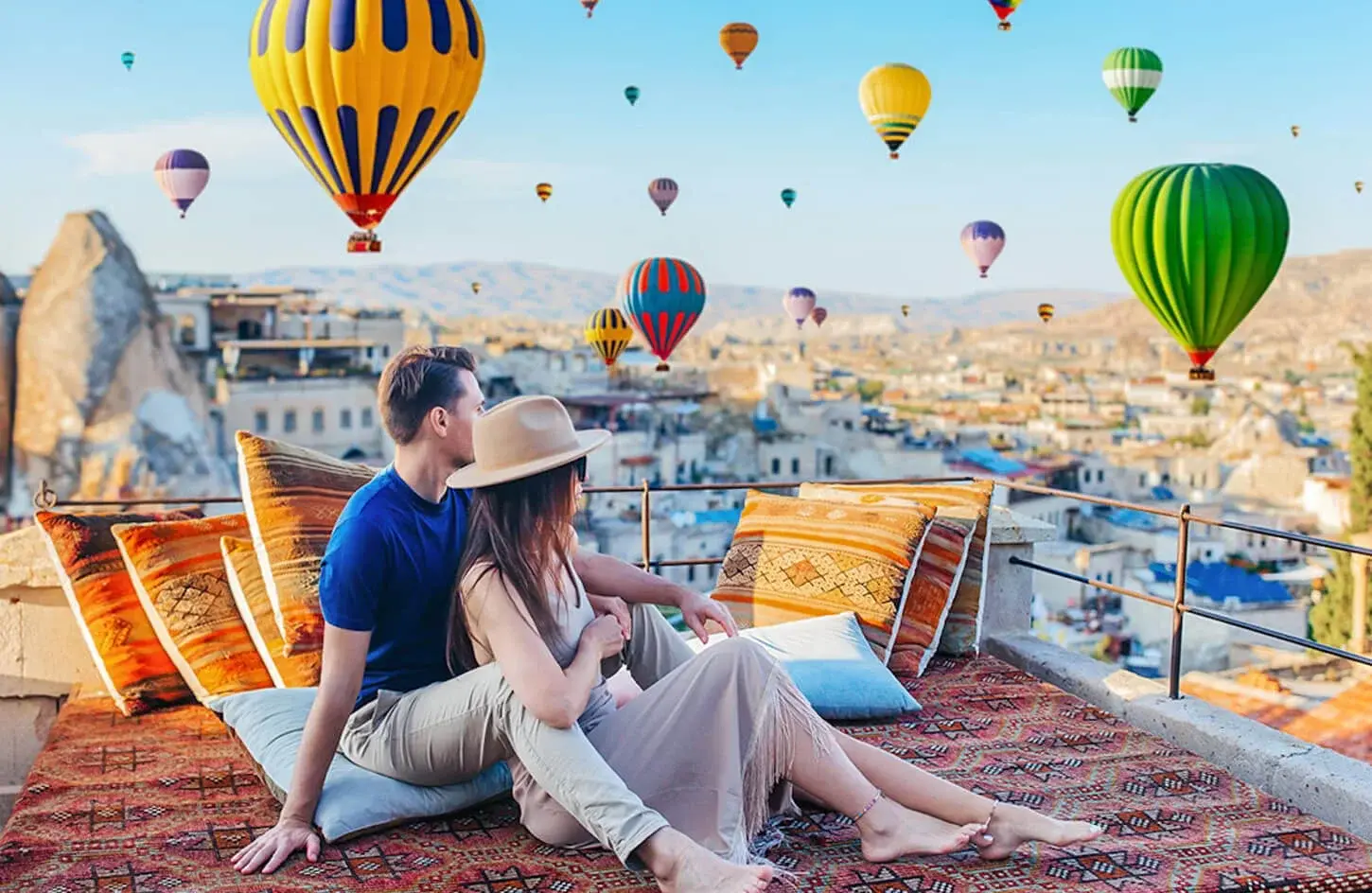 Desayuno en el hotel. Opcionalmente recomendamos disfrutar de un espectacular paseo en globo aerostático al amanecer. Salida para visitar esta fantástica región, donde nació San Jorge, con su fascinante y original paisaje, formado hace 3 millones de años por lava arrojada de los volcanes Erciyes y Hasan.
