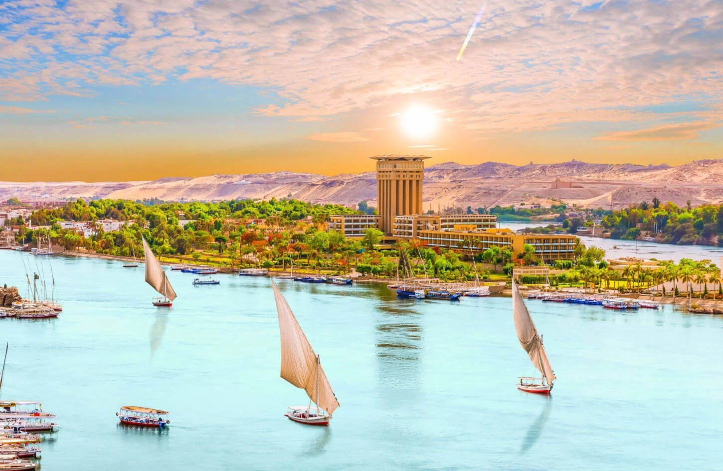 Por la tarde, posibilidad de excursión opcional al pueblo nubio (paseo en faluca por las islas Elefantina y del Lord Kitchener, paseo en camello, fotografías con cocodrilos y contacto con la cultura nubia).