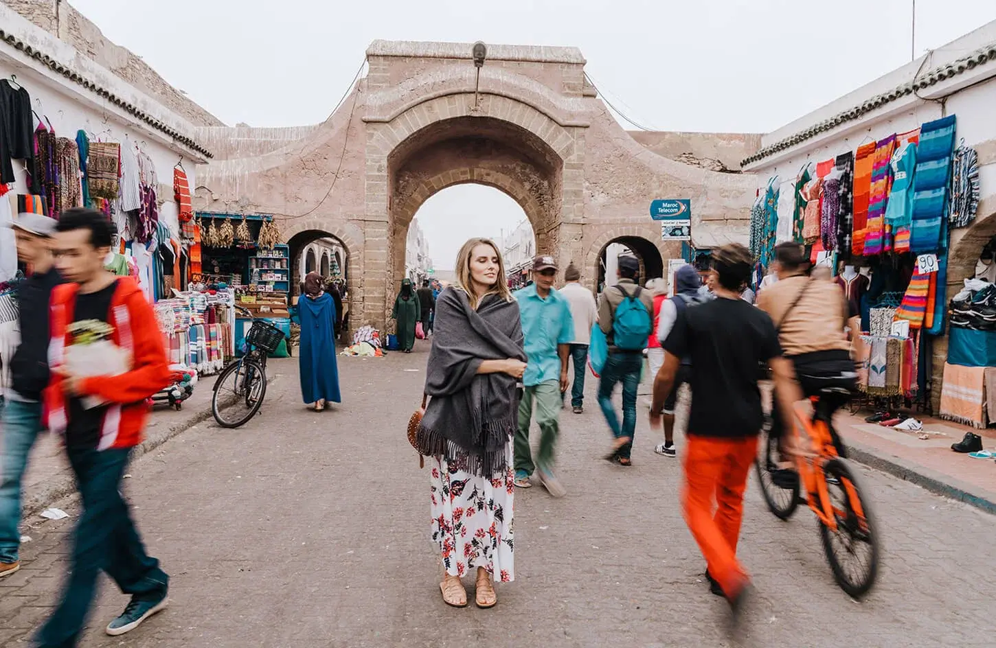 Desayuno.salida hacia Essaouira.Por el camino, podremos admirar los campos de cultivo natural donde crece el árbol más famoso de Marruecos y del que se extrae el preciado aceite de Argan. Pararemos para hacer fotos a los típicos árboles con las cabras subidas a los árboles para alimentarse de este fruto. Antes de llegar a Essaouira, nos detendremos en un alto mirador, para dar la bienvenida a la ciudad y verla en su totalidad en panorámica.